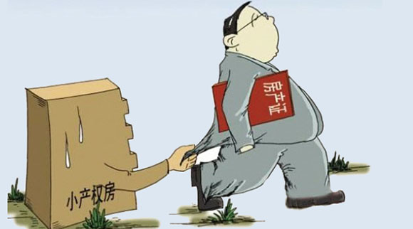 Property developed by rural people on collective land 集体土地 without requisition. This retains the value-added in local hands, rather than networks of officials and developers. Ownership is a gamble, as formal title deeds are not provided, hence not honoured by courts. Moves to legalise it are stalled, despite the solution it offers to affordable housing shortages link