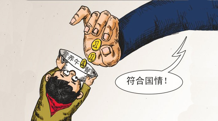 Used to legitimise policy and deflect criticism on grounds of unique features: demography, geography, history and culture. In the cartoon, the child's bowl is labelled nourishing lunches. Dropping a few cents into it, the rich and powerful (official) donor explains: 'in keeping with the national condition'. Xi Jinping's view is that SOE reform must conform to the 'national condition': SOEs are to continue to be centrally controlled through SASAC