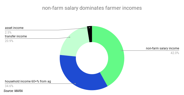 Despite contributing to only 2.5 percent of farmers’ income, passive income generated by rural collectively-owned assets is thought to have excellent growth potential, given continuing reform to clarify property rights and improve business models or benefit-sharing mechanisms. The image of ‘three blocks of land’ san kuai di 三块地 is central to serial reforms. Annual tasks include